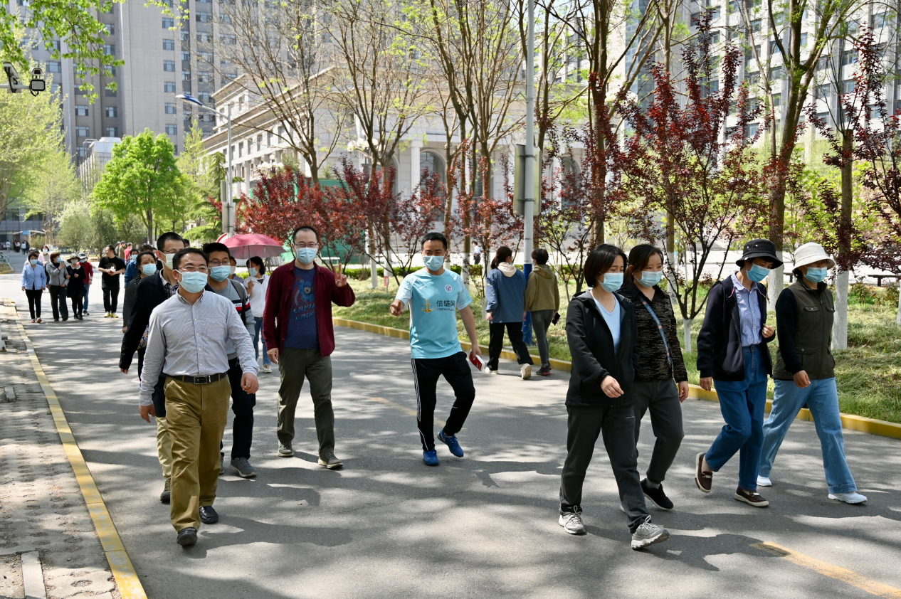 教职工集体合影留念后,长走活动正式开始。迎着温柔的风,沿着熟悉的道路,迈着轻快的步伐,各位老师相携前进,一边欣赏学校美景,亲近自然,一边交流工作,感受生活。