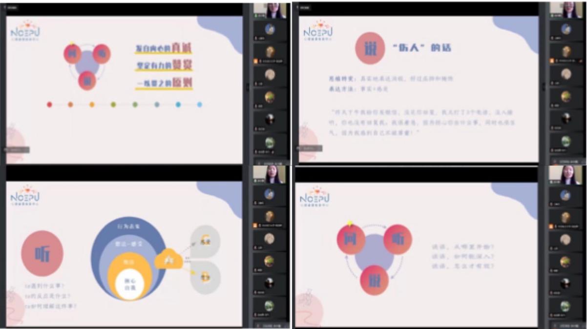 还首次邀请研究生导师参加了培训交流,并将在以后继续开展。在培训活动之后,与会老师们纷纷表示受益匪浅:“了解了问听说的技巧与方法,有利于更好地开展学生工作”;“知道如何与学生交谈沟通,去了解学生情况”;“需要因材施教,需要鼓励学生,需要倾听学生”。这些都是老师们的真诚回应,同时还有老师在会后提出了自己遇到的问题,余小霞也耐心地给予了回复与建议。