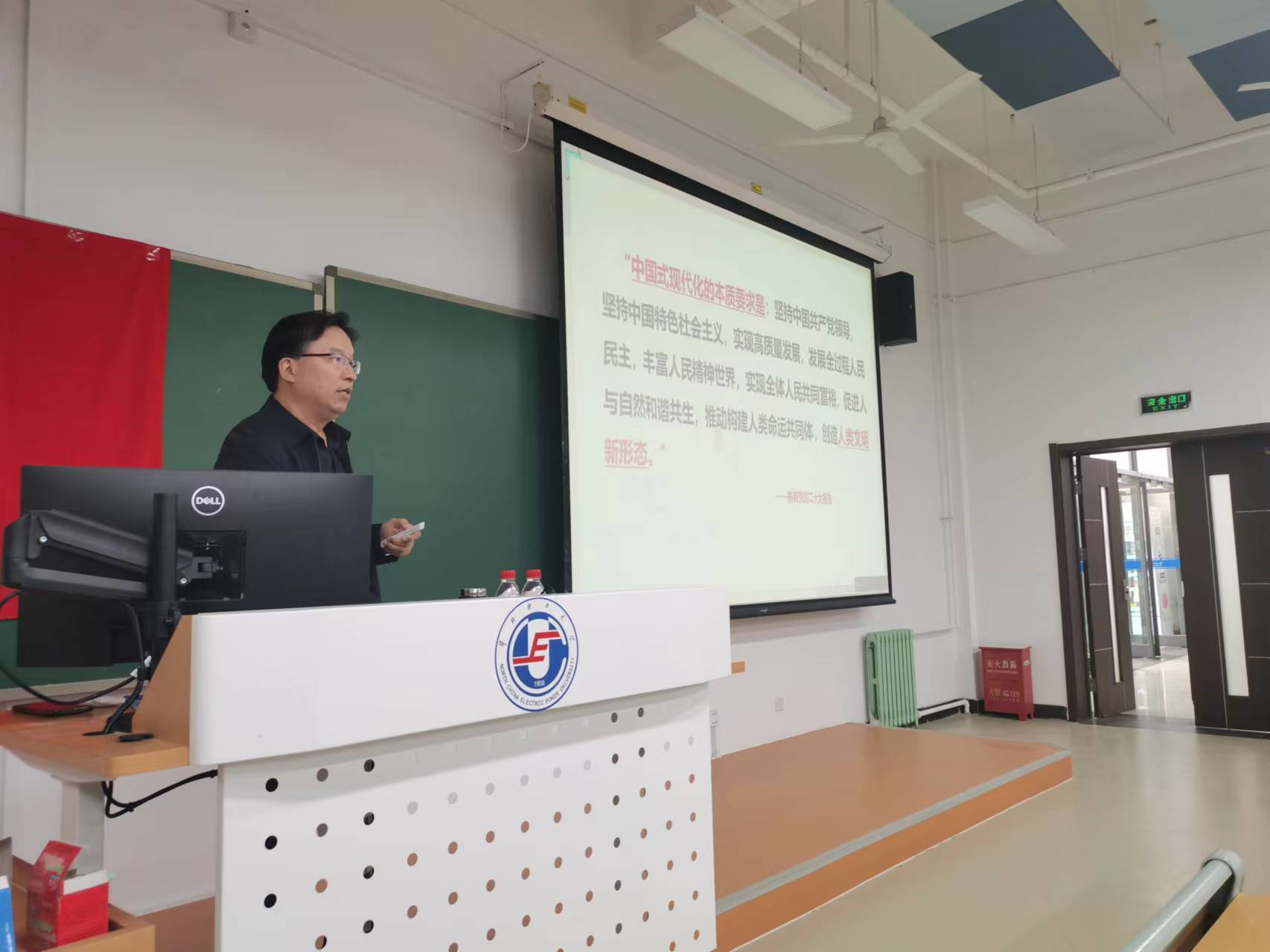 党总支书记孙平以“中国式现代化历史进程中新时代青年的责任与使命”为主题,生动地为学员们上了一次党课,辅导员王倩参加了本次党课培训。