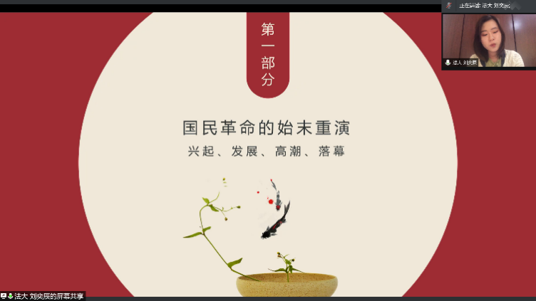 兼职辅导员蔡洁也参加了此次活动。本次活动之前,同学们继续精读金冲及所著的《二十世纪中国史纲》,结合各自读书感受,推荐了四组同学参加此次线上活动的分享。