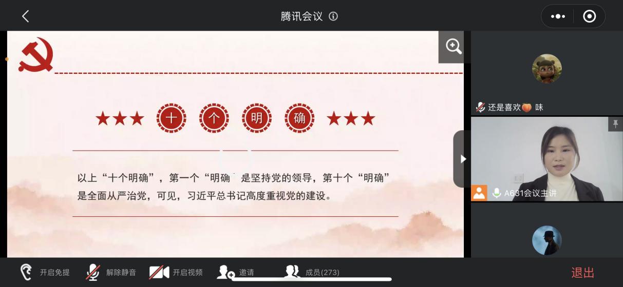 骆小平围绕《中共中央关于党的百年奋斗重大成就和历史经验的决议》深入讲述中国共产党百年奋斗的历史成就与伟大意义。她指出,《决议》系统阐释了“三次飞跃”、科学概括了“四个历史时期”、生动展示了“五大历史意义”。报告主题鲜明,内涵丰富,既引用了权威资料,又融入了鲜活事例,具有很强的思想性、针对性和指导性,切实将学习全会精神同做好当前工作紧密结合。