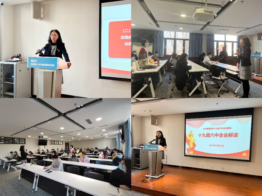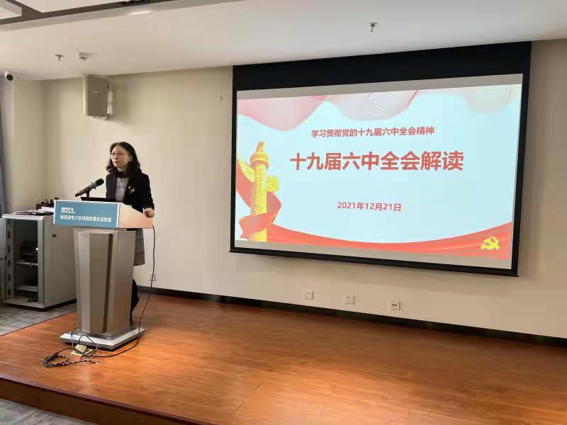 毕天姝强调了十九届六中全会审议通过《中共中央关于党的百年奋斗重大成就和历史经验的决议》的意义。她指出,这个《决议》必将对推动全党统一思想、统一意志、统一行动,团结带领全国各族人民以史为鉴、开创未来、埋头苦干、勇毅前行,在新时代坚持和发展中国特色社会主义,实现中华民族伟大复兴,产生重大而深远的意义。她结合十九届六中全会内容,带领大家共同学习了发展全过程人民民主、在高质量发展中促进共同富裕以及正确认识和把握百年奋斗的历史经验的重要意义,以及中国创造经济快速发展奇迹的“秘诀”等内容。