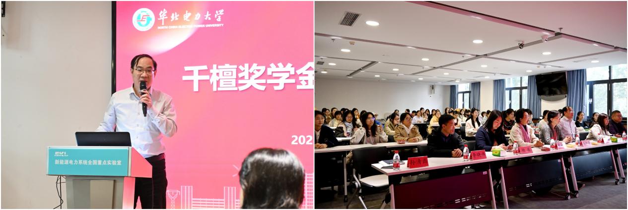 随后,千檀奖学金发起人2007级校友杨薇介绍了奖学金的名称由来与设立初衷。她表示,奖学金以“千檀”为名,寄寓坚韧向上、厚积薄发的成长期许,全方位助力电气女生成长为推动电力行业高质量发展的重要力量。