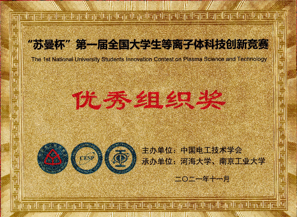 由中国电工技术学会主办,河海大学、南京工业大学承办的2021年首届全国大学生等离子体科技创新竞赛在本月初落下帷幕。华北电力大学积极组织两校区电气、能动专业学生参赛,经多轮专家评审和线上答辩,全校共7支队伍全部进入决赛,并分别获一等奖2项、二等奖2项、三等奖3项,并荣获“优秀组织奖”。其中我院学生范迦羽为队长的一支队伍获得一等奖,指导教师赵志斌、卞星明指导的队伍获得一等奖1项、三等奖2项。