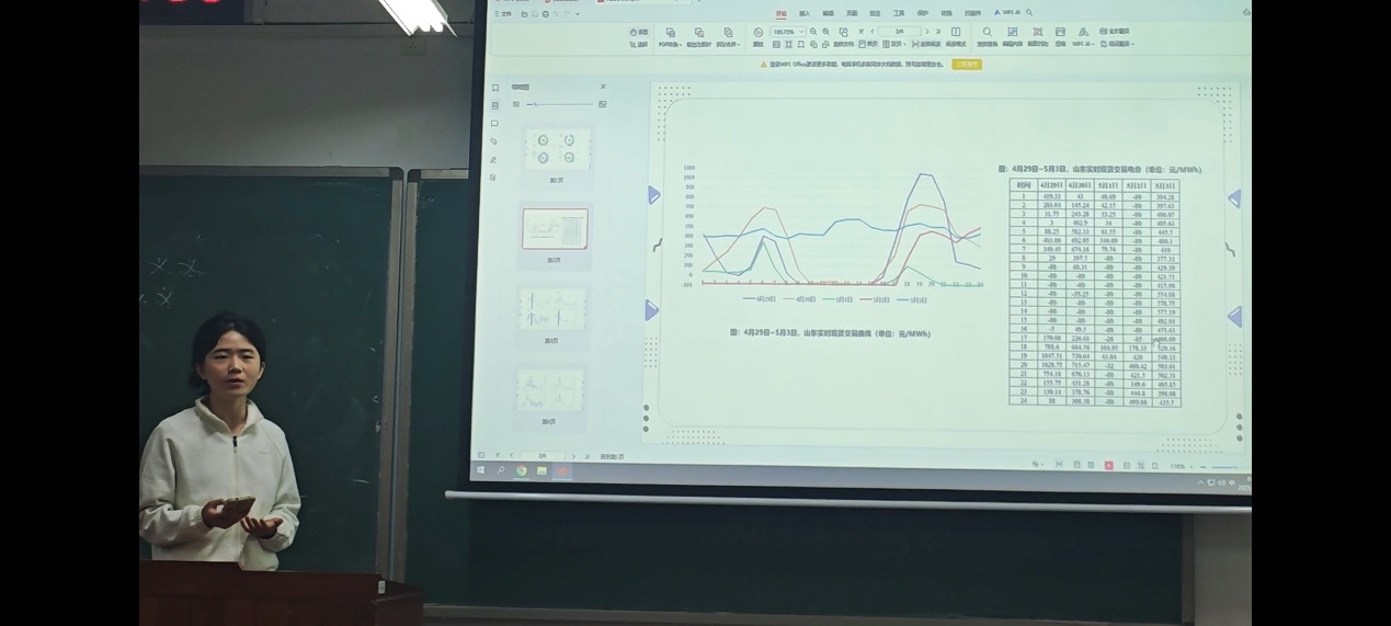 自定义名称1组同样对西班牙大停电事故进行了深入分析。该小组成员以轻松愉快的口吻展开讲解,将专业的事故分析娓娓道来。小组认为,本次事故的根源在于对系统振荡处理不当,导致新能源机组大量脱网,引发连锁反应。在此基础上,该小组将视野拓展至更广阔的欧洲能源格局,指出欧洲新能源电网正处于转型的关键期:一方面,电网中新能源占比不断攀升,系统不稳定性随之增强;另一方面,传统电网设施面临设备老化等现实困境,新旧交替之际挑战重重。随后,小组以德国为例,生动讲解了欧洲电价波动的显著特征,对比分析了动态电价与固定电价两种合同模式,让同学们直观感受到能源转型对经济层面的深刻影响。
