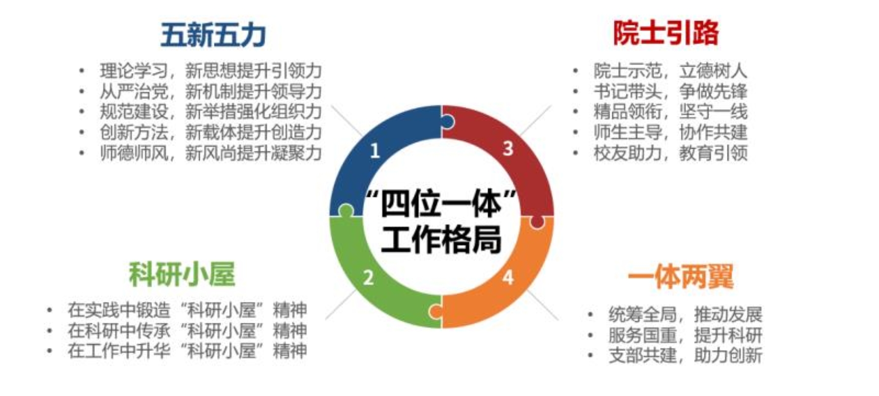 四方研究所以杨奇逊院士为典范,通过开展“院士+四个引路人”活动,加强研究所教师思想政治建设、师德师风建设,实现党员从“心”思党,培养了一大批行业精英人才。四方研究所通过引进优秀校友资源作为构建科研育人体系的着力点和创新点,围绕“传承科学精神,感悟科技人生,坚定理想信念,规划职业生涯”的活动主题,开展了“主题报告+座谈分享”相结合的活动,让学生亲身聆听校友关于科学精神、不懈奋斗、人生追求、持之以恒等话题的精辟讲述。