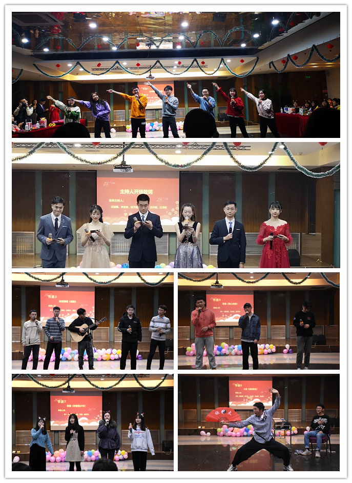 此次联欢活动的节目内容形式多样,研零到研三四个年级同学共展示了7个精心准备的节目,点燃了观众们的热情,掌声和欢呼声此起彼伏。研零同学表演了小品《低价航空》;研一同学分别演唱了歌曲《你曾是少年》以及歌曲《真心英雄》;研二全体女同学带来了舞蹈《兔子舞》,全体男同学则完成了吉他弹唱《成都》;研三同学分别演绎了唱跳《开场舞+歌曲串烧》以及吉他弹唱《后来》。