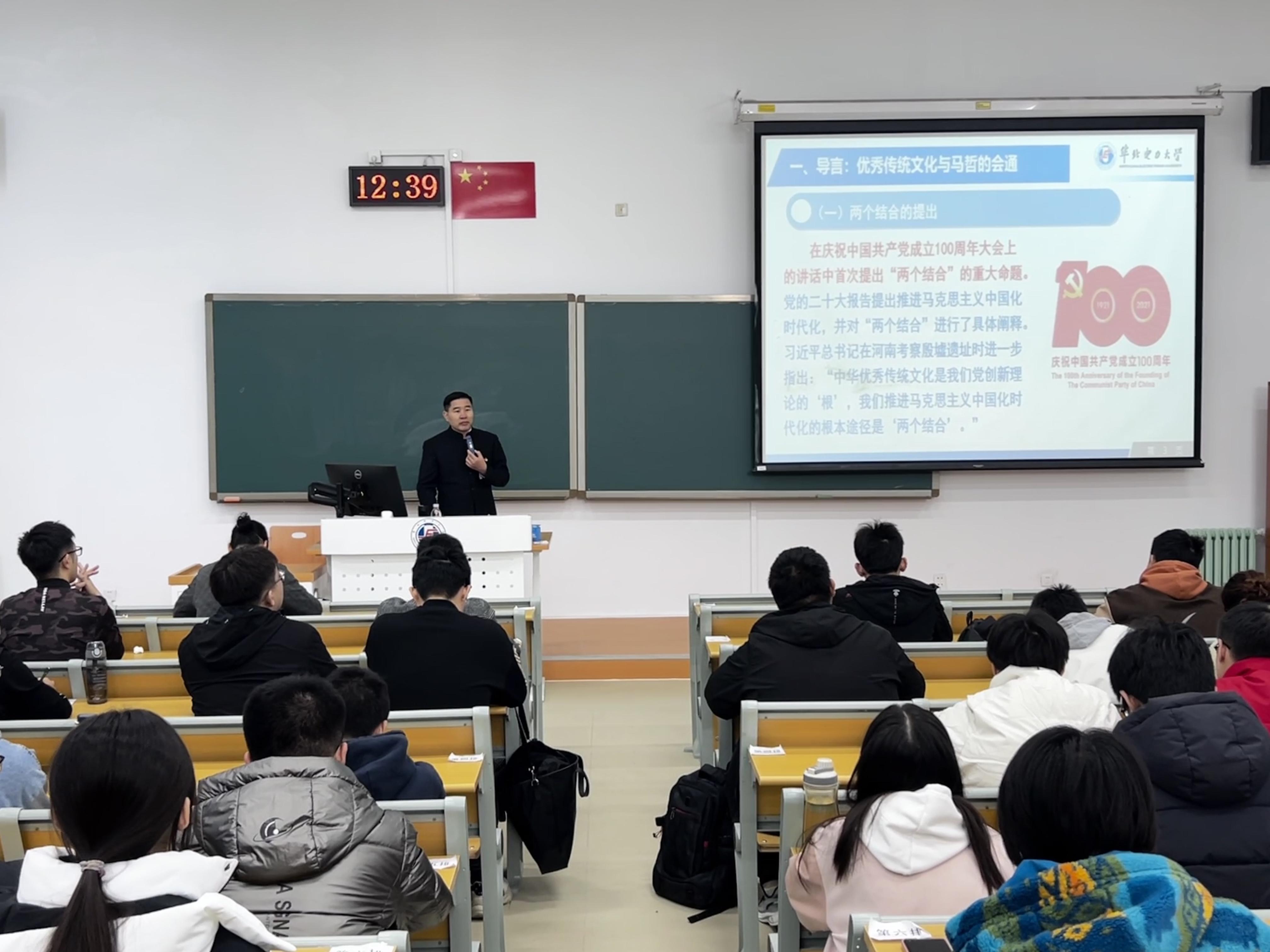 院长王伟教授以“马克思主义中国化与第二个相结合”为主题,生动地为学员们上了一次党课,辅导员王倩参加了本次党课培训。