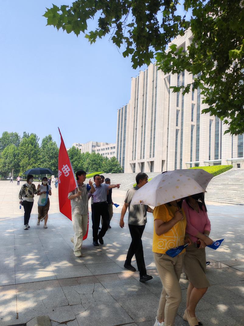 活动伊始,老师们齐聚于主楼西广场。在简短的开场后,一张满载着幸福笑容的集体合影,将此刻的美好定格为永恒。伴随着出发的号令,队伍沿着绿荫夹道的校园小路前行,老师们或并肩漫步,或三两成群,平日里严谨的学者此刻化身为轻快的行者,爽朗的笑语与亲切的交谈在静谧的校园中交织成最动听的旋律。